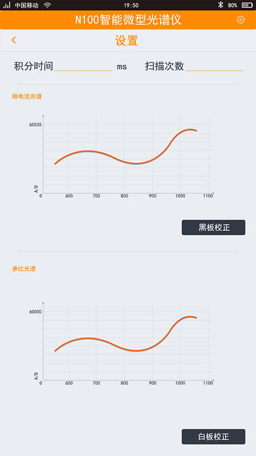 該軟件基于Android平臺(tái)開(kāi)發(fā)和使用,中文界面,界面友好,操作簡(jiǎn)便、人性化設(shè)置。具有暗電流掃描、參比掃描、樣品掃描、查看/顯示光譜、下載模型、調(diào)用模型等主要功能。